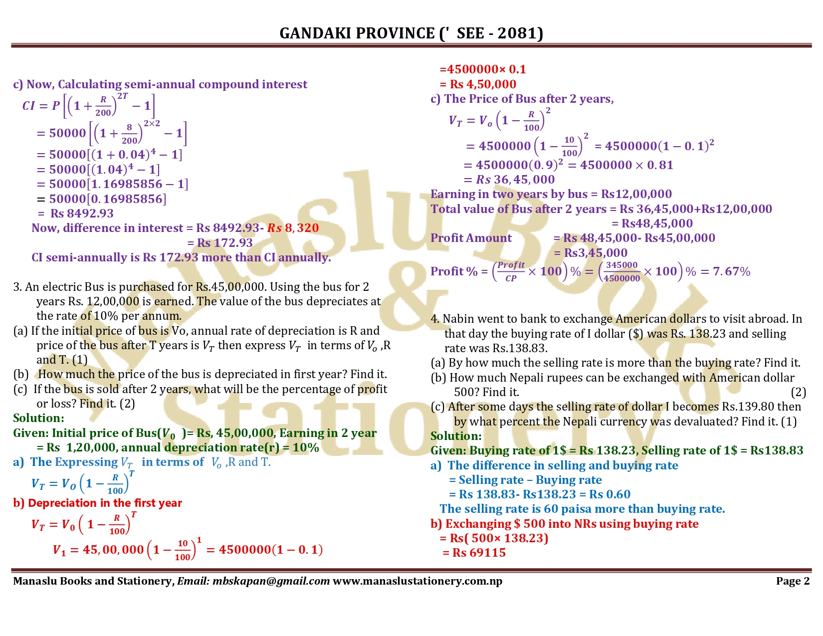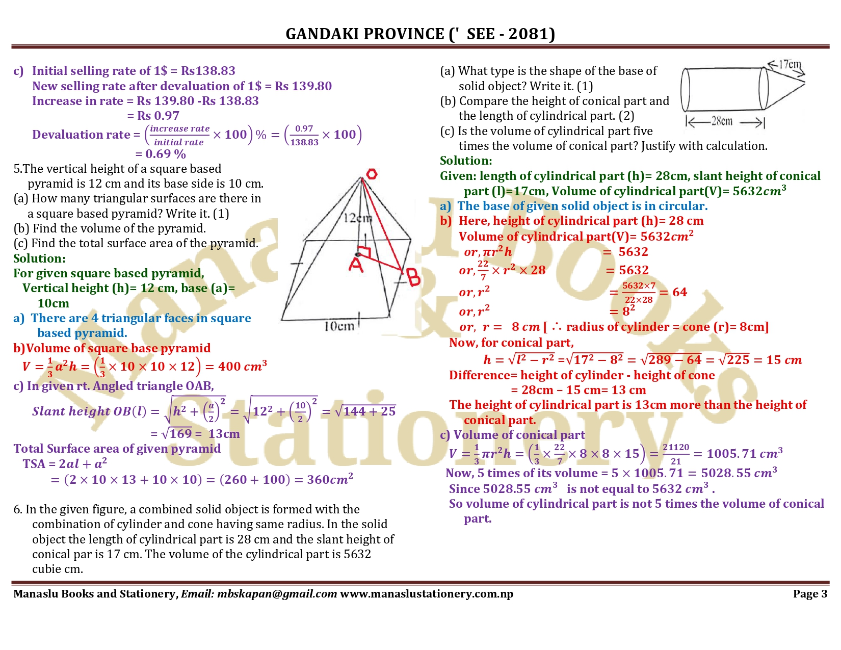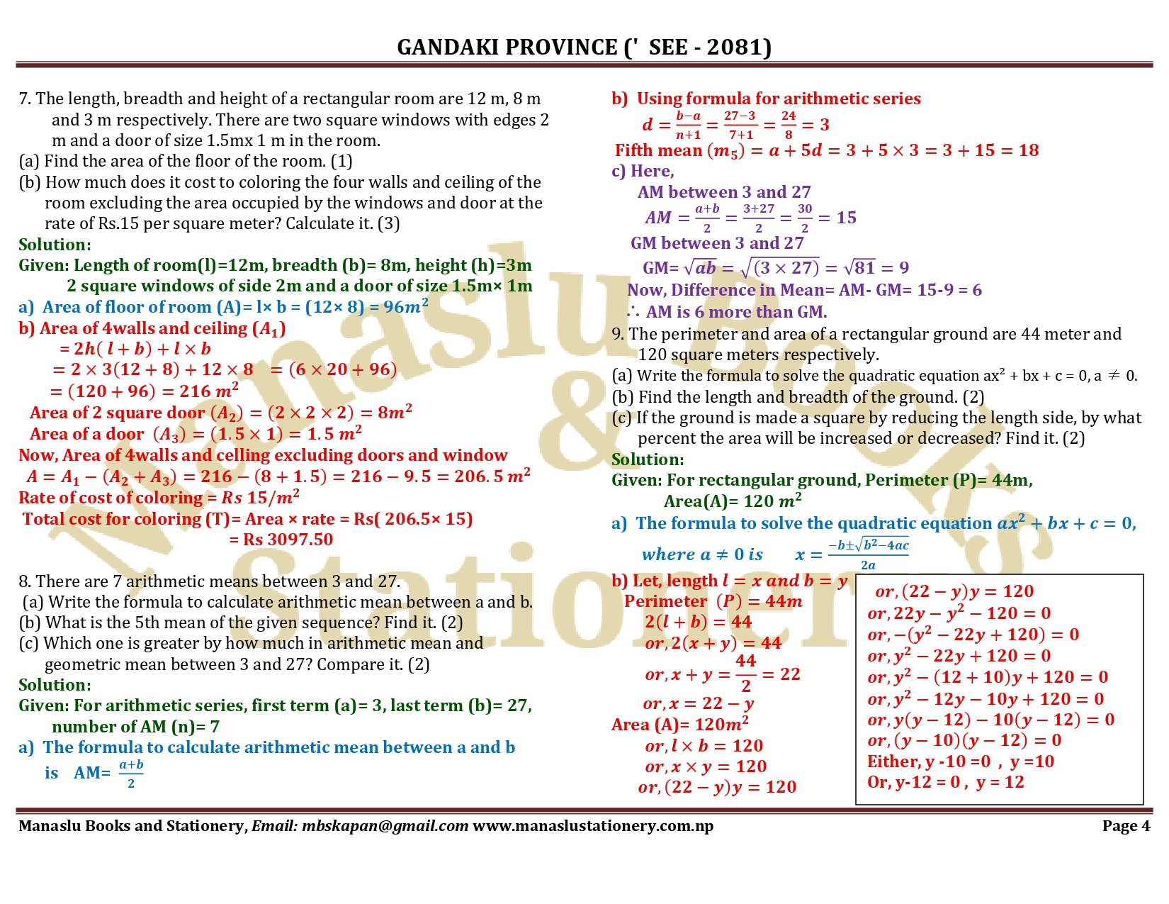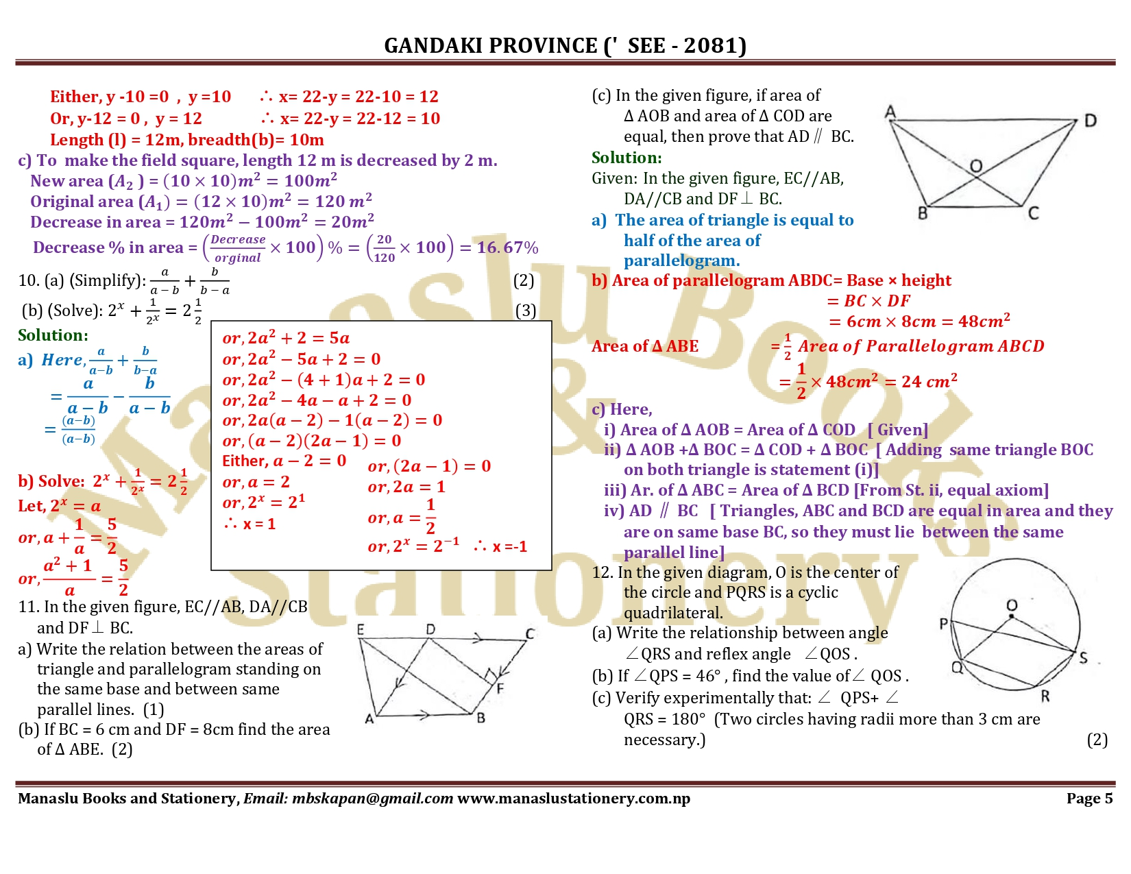 Gandaki Province SEE Mathematics Solution - 2081