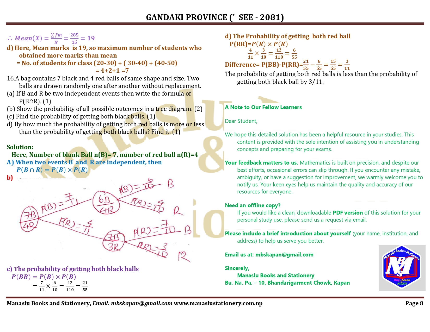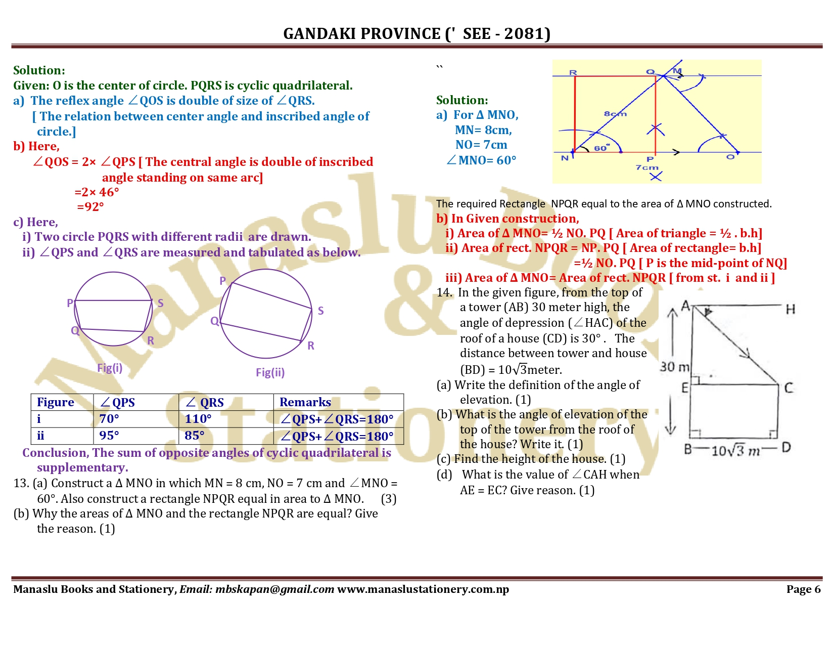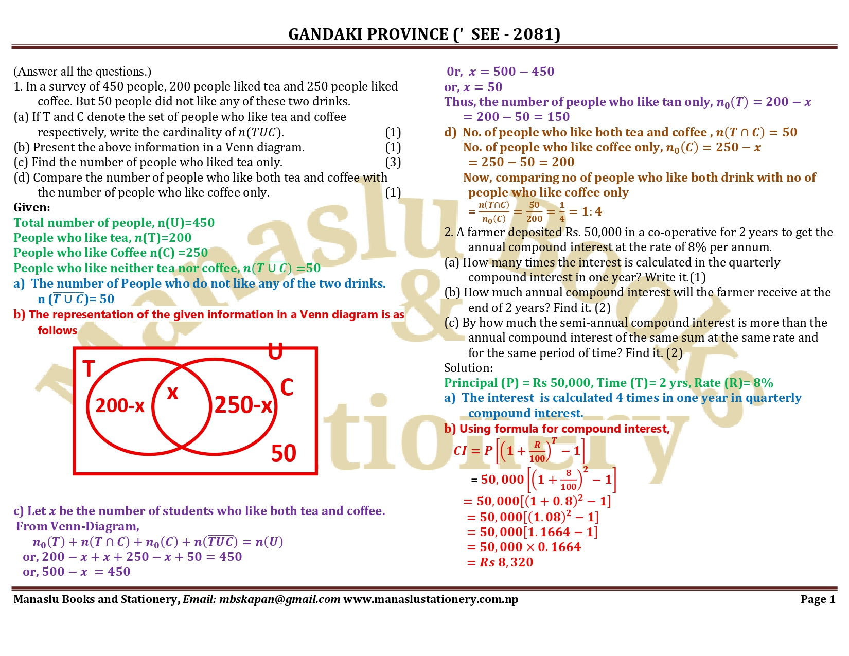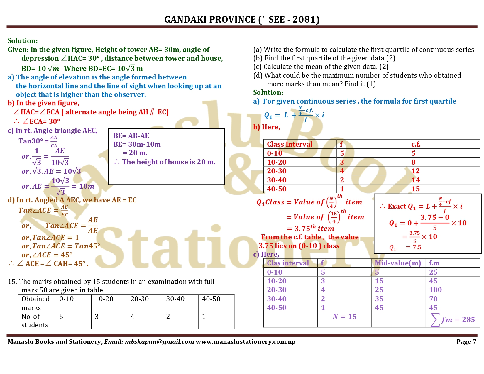 Gandaki Province SEE Mathematics Solution - 2081