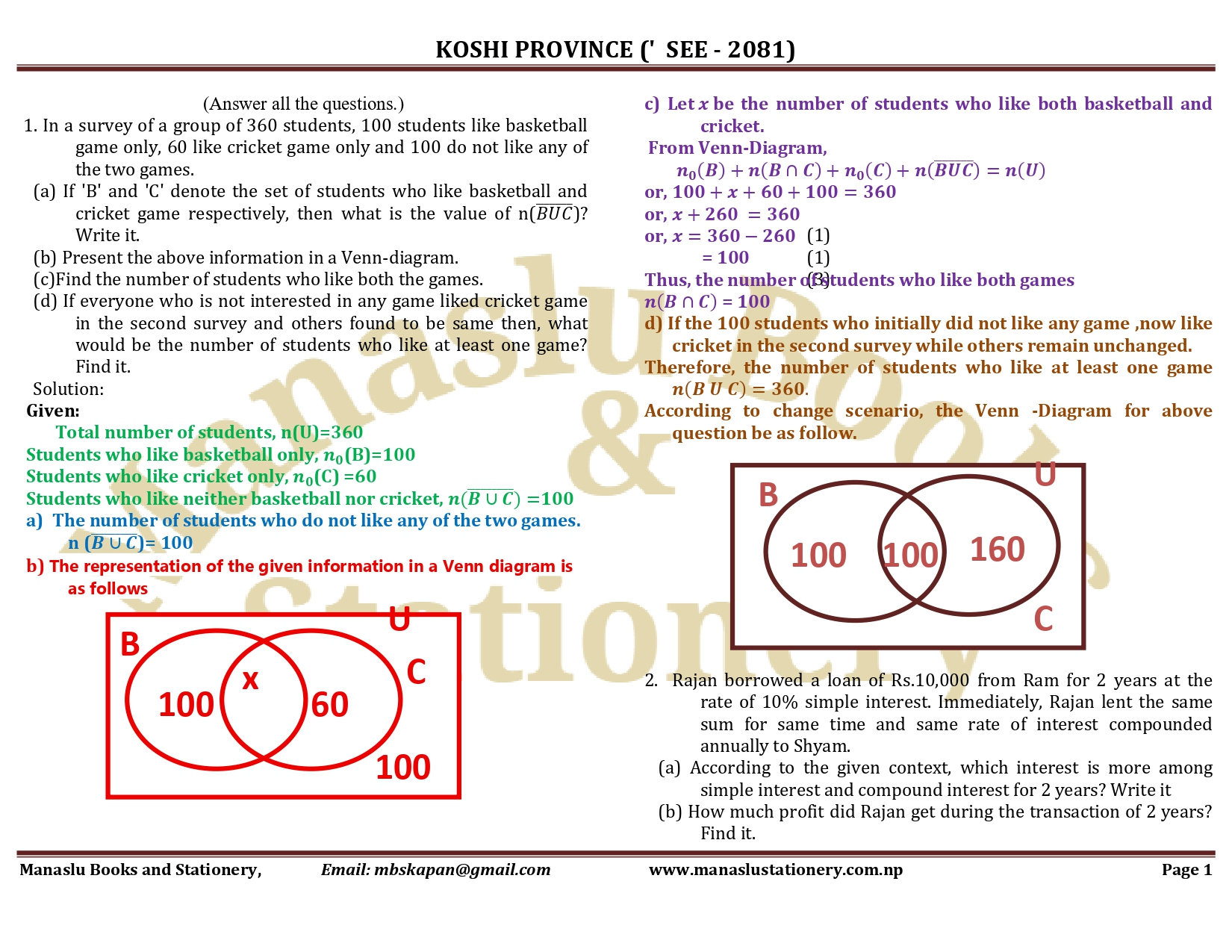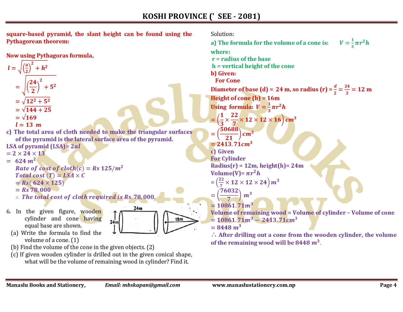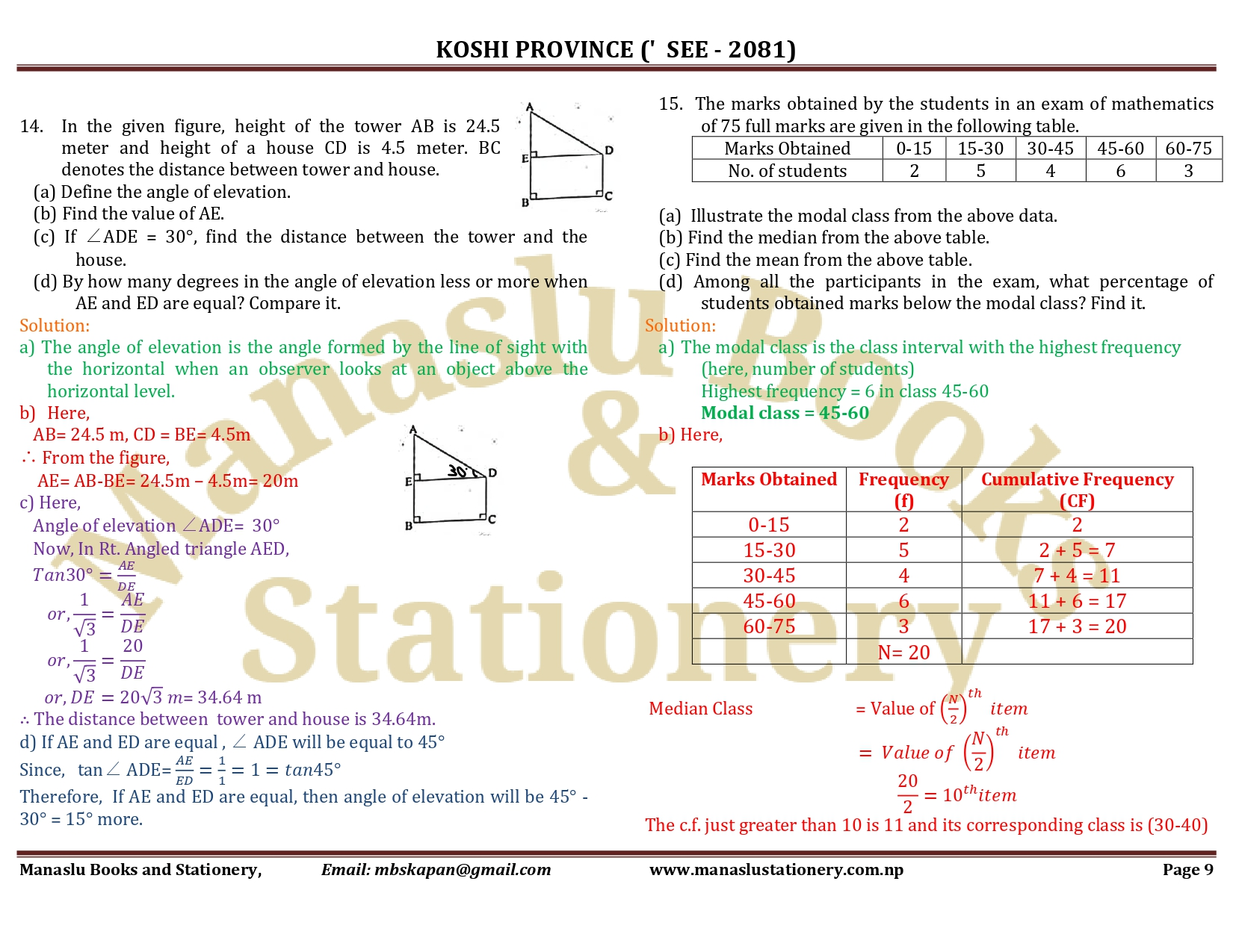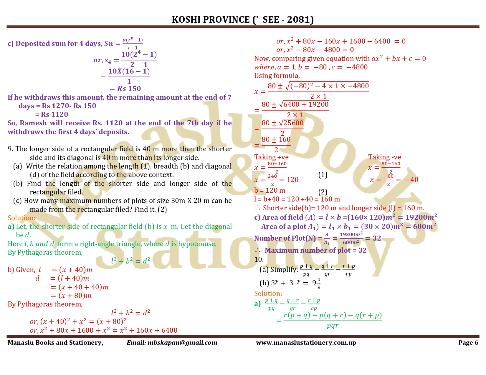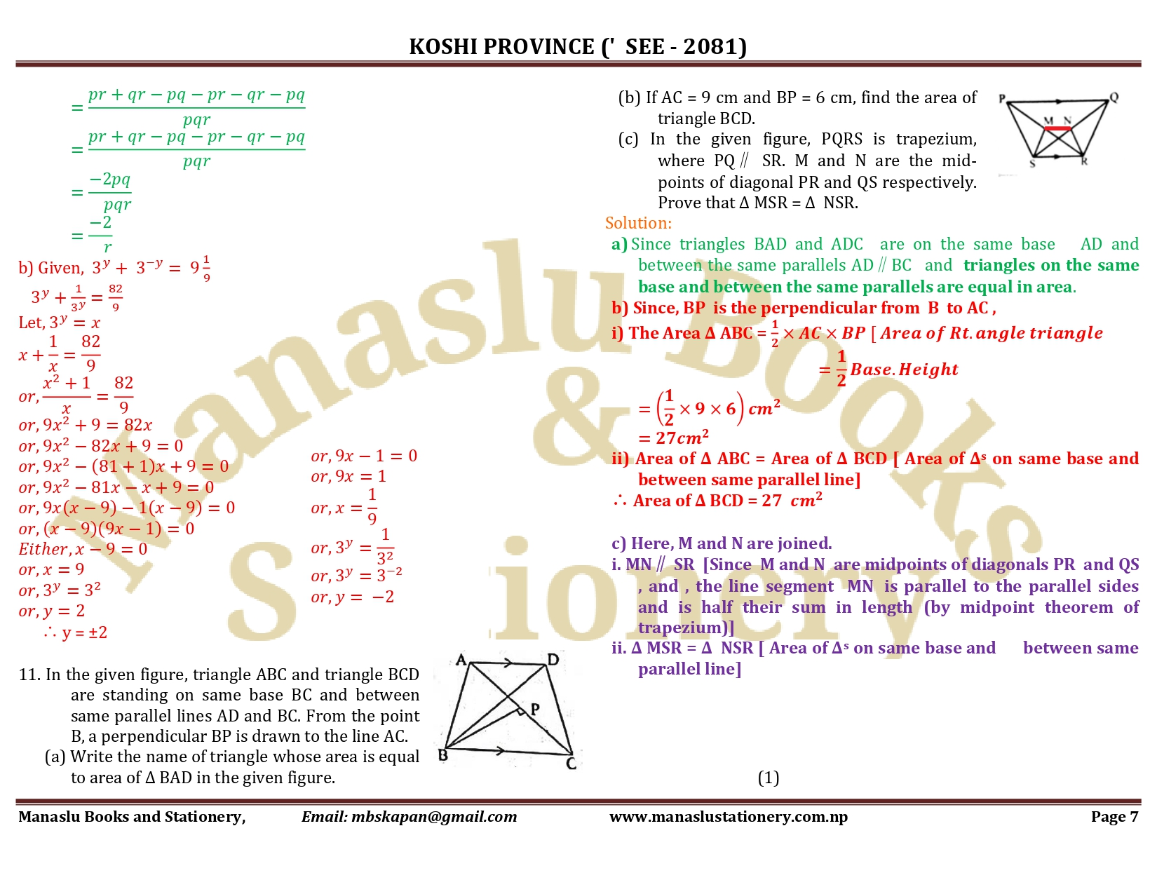 Koshi Province SEE Mathematics Solution - 2081
