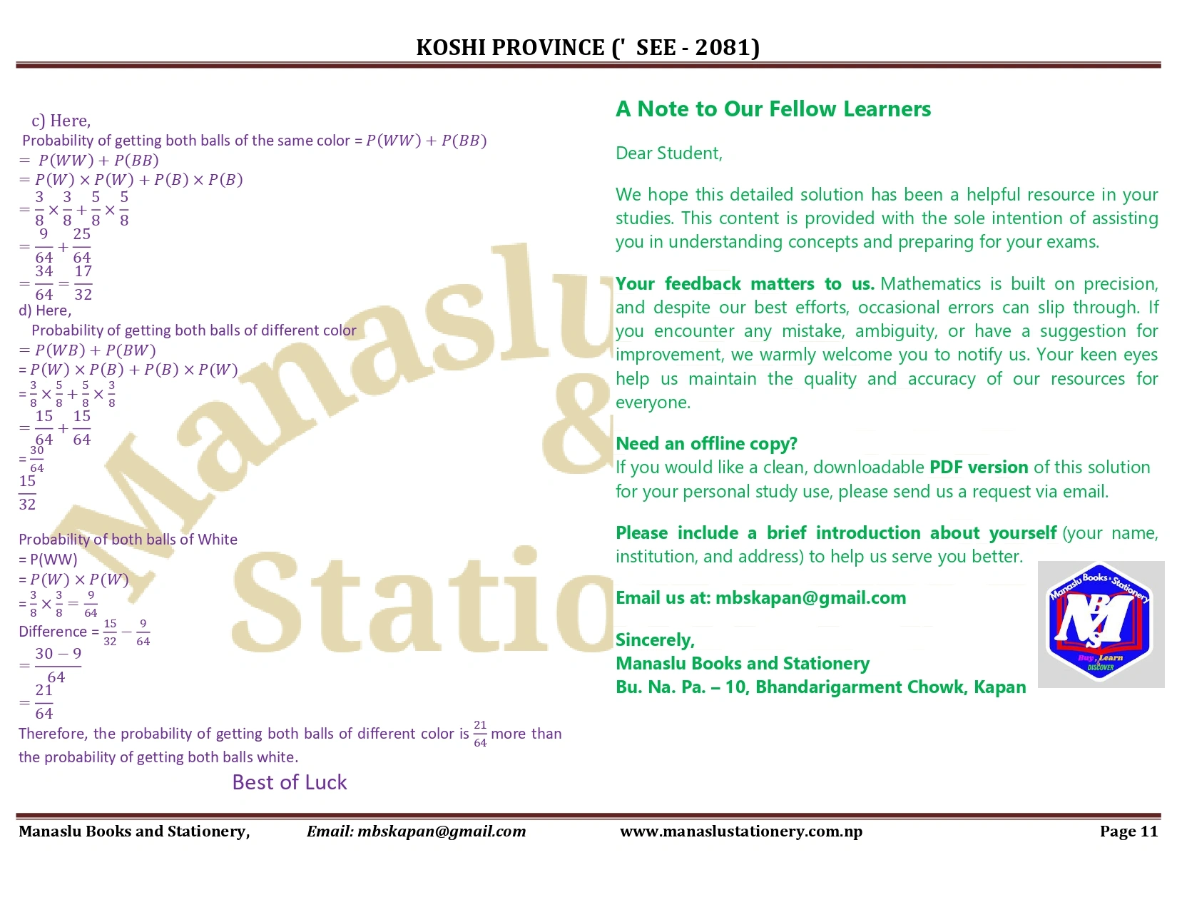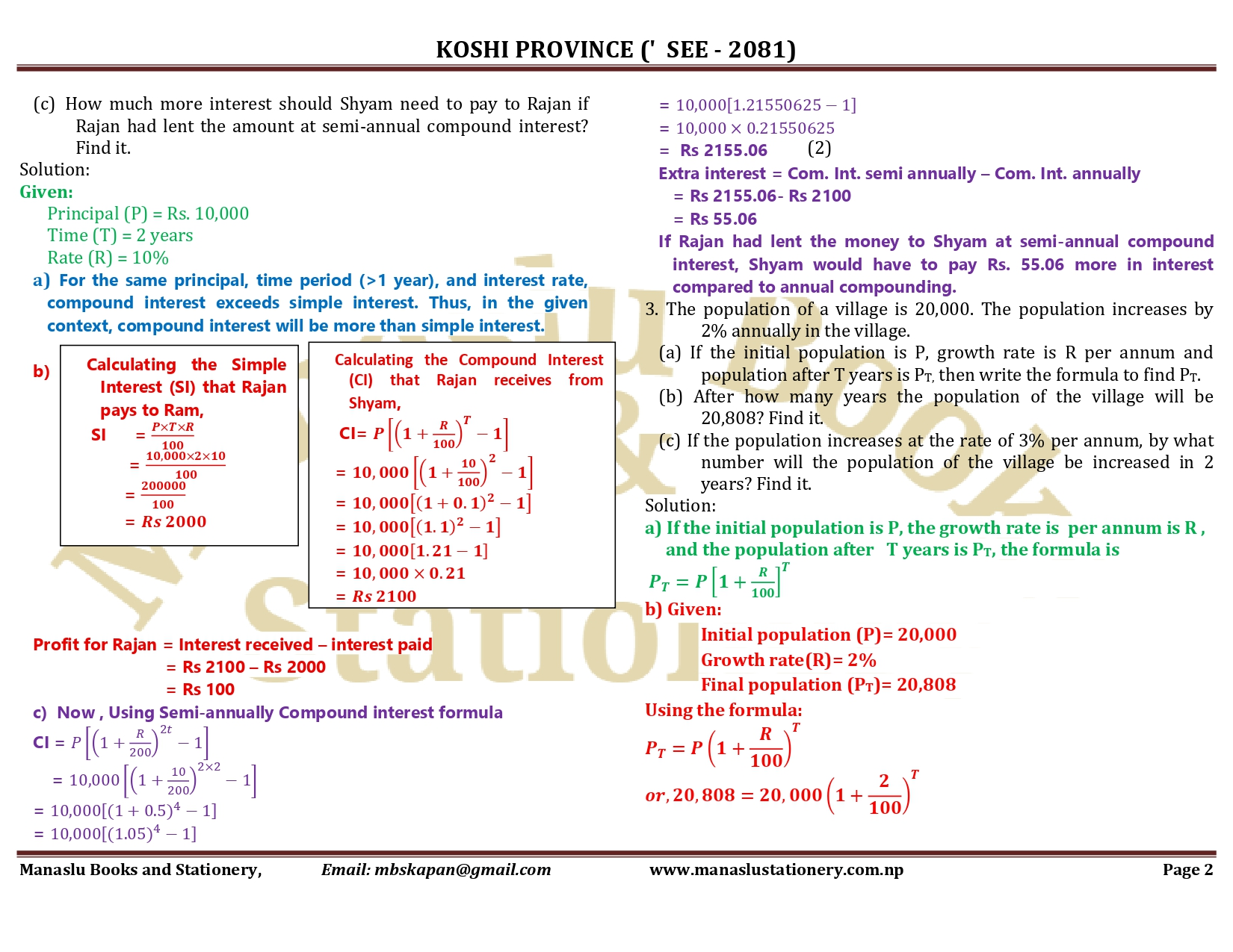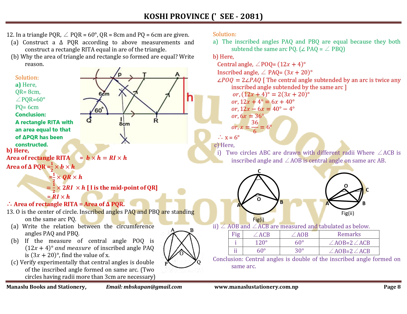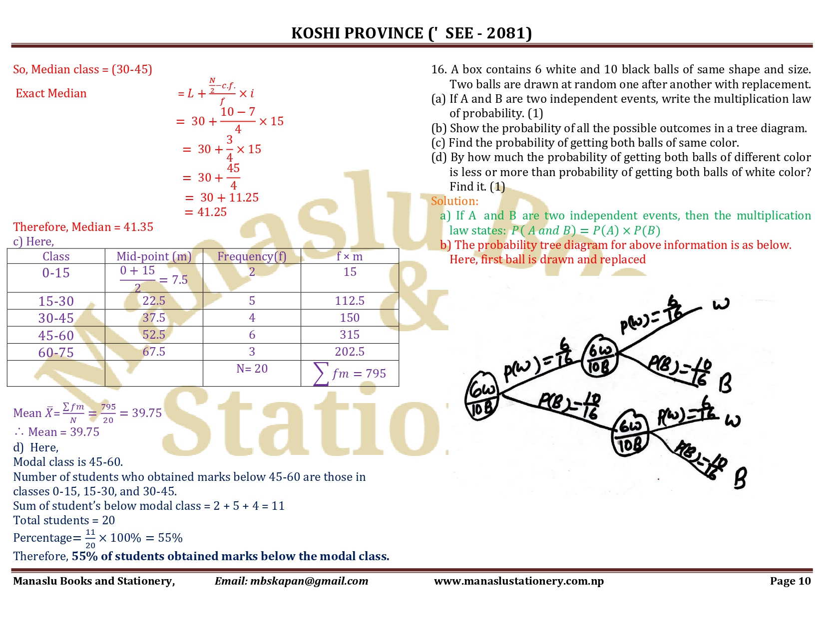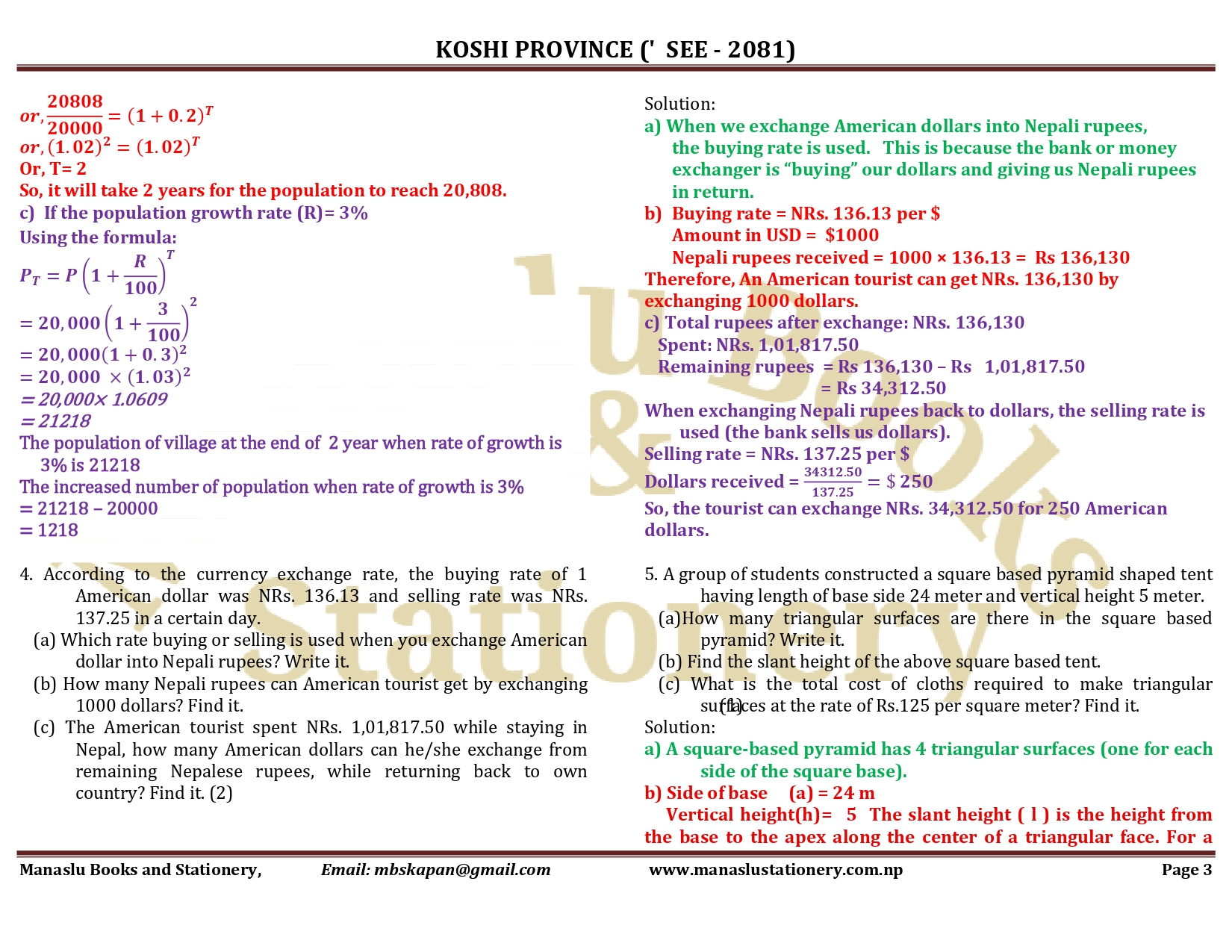 Koshi Province SEE Mathematics Solution - 2081