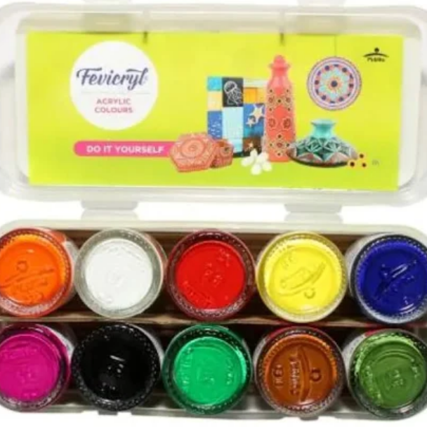 Fevicryl Acrylic Colours by Pidilite are renowned for their versatility and vibrant hues, making them a favorite among artists and hobbyists. These water-based, non-toxic paints are suitable for various surfaces, including canvas, wood, terracotta, glass, fabric, and metal. They are waterproof even on porous substrates, ensuring durability and longevity of your artwork
